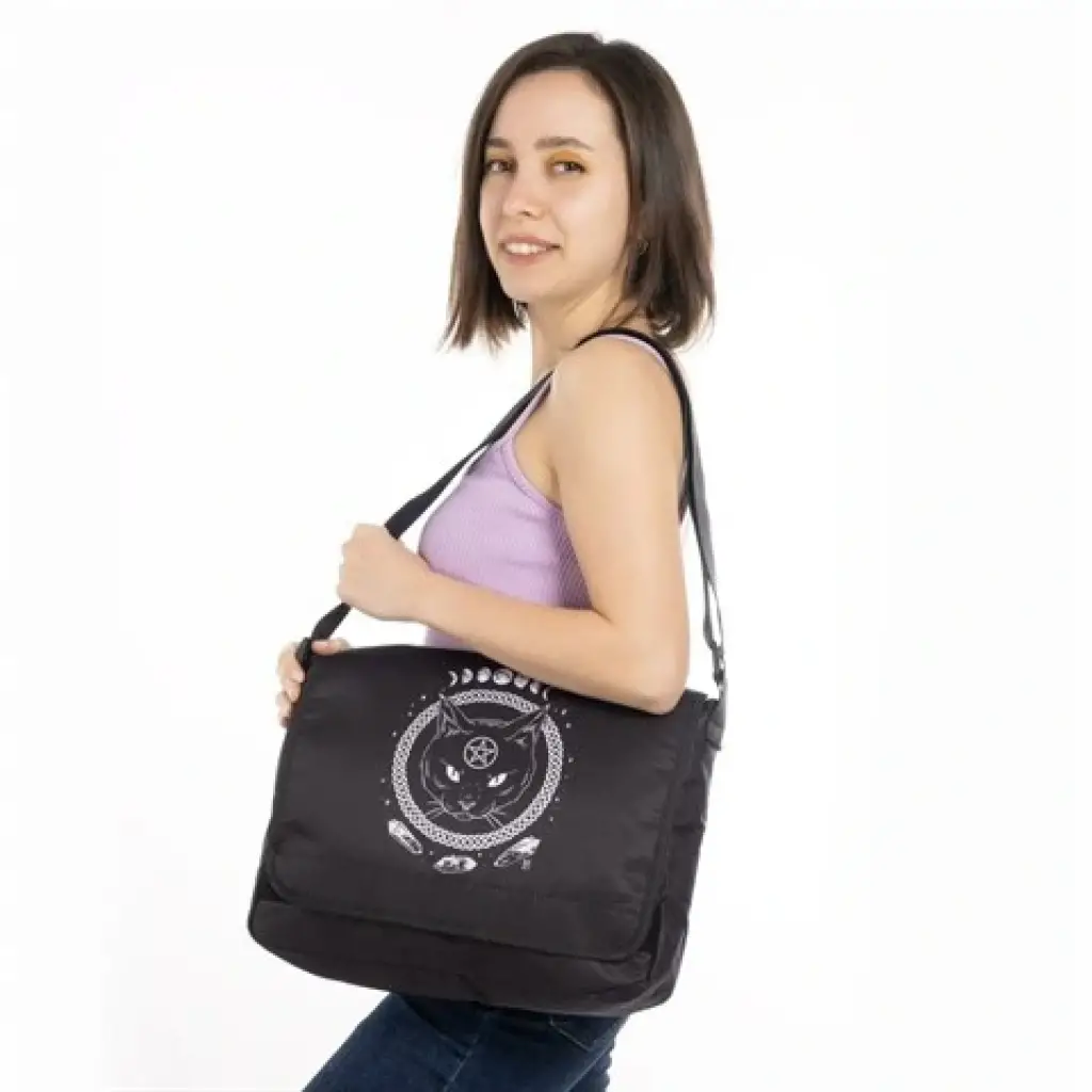 Gothic Cat Baskılı Unisex Postacı Çantası
