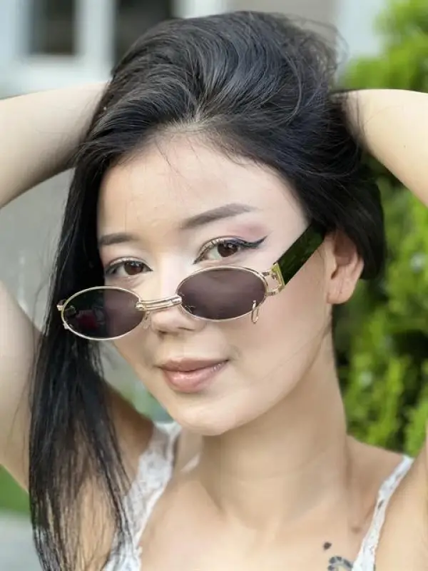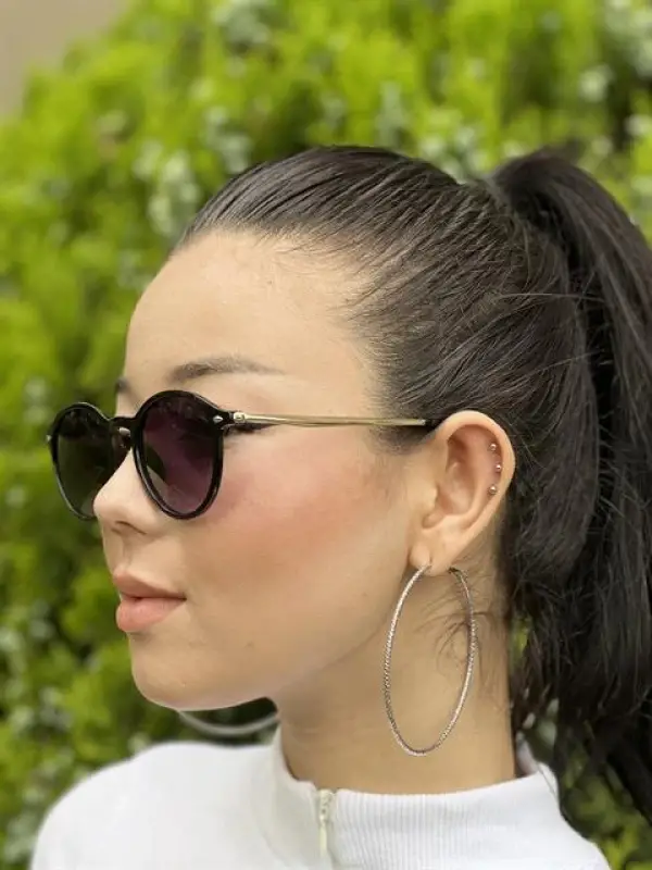 Y2K Piercing Detay Oval UV Korumalı Siyah Renk Bakır Uçlu Güneş Gözlüğü