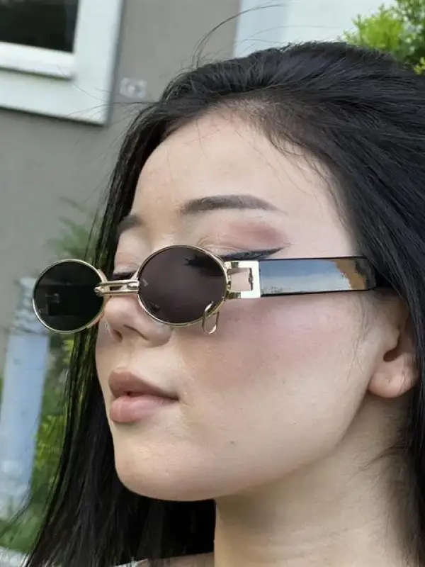 Y2K Tarz Yuvarlak Klasık Cam Bakır Uc Detaylı Siyah Renk UV Korumalı Güneş Gözlüğü