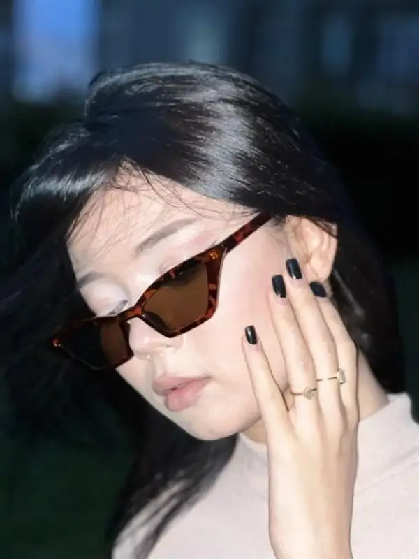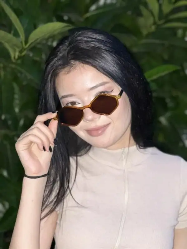 Y2K Tarz Altıgen Köşe Leopar UV Korumalı Siyah Renk Güneş Gözlüğü