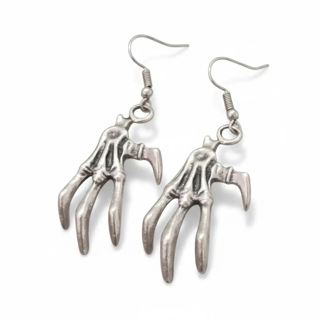 ESC BUTİK Antik Gümüş Kaplama Vintage Gotik Tarz Antik Gümüş Renk İskelet El Figürlü Sallantılı Küpe, tarzınıza gotik bir dokunuş katmak için mükemmel bir seçenektir.