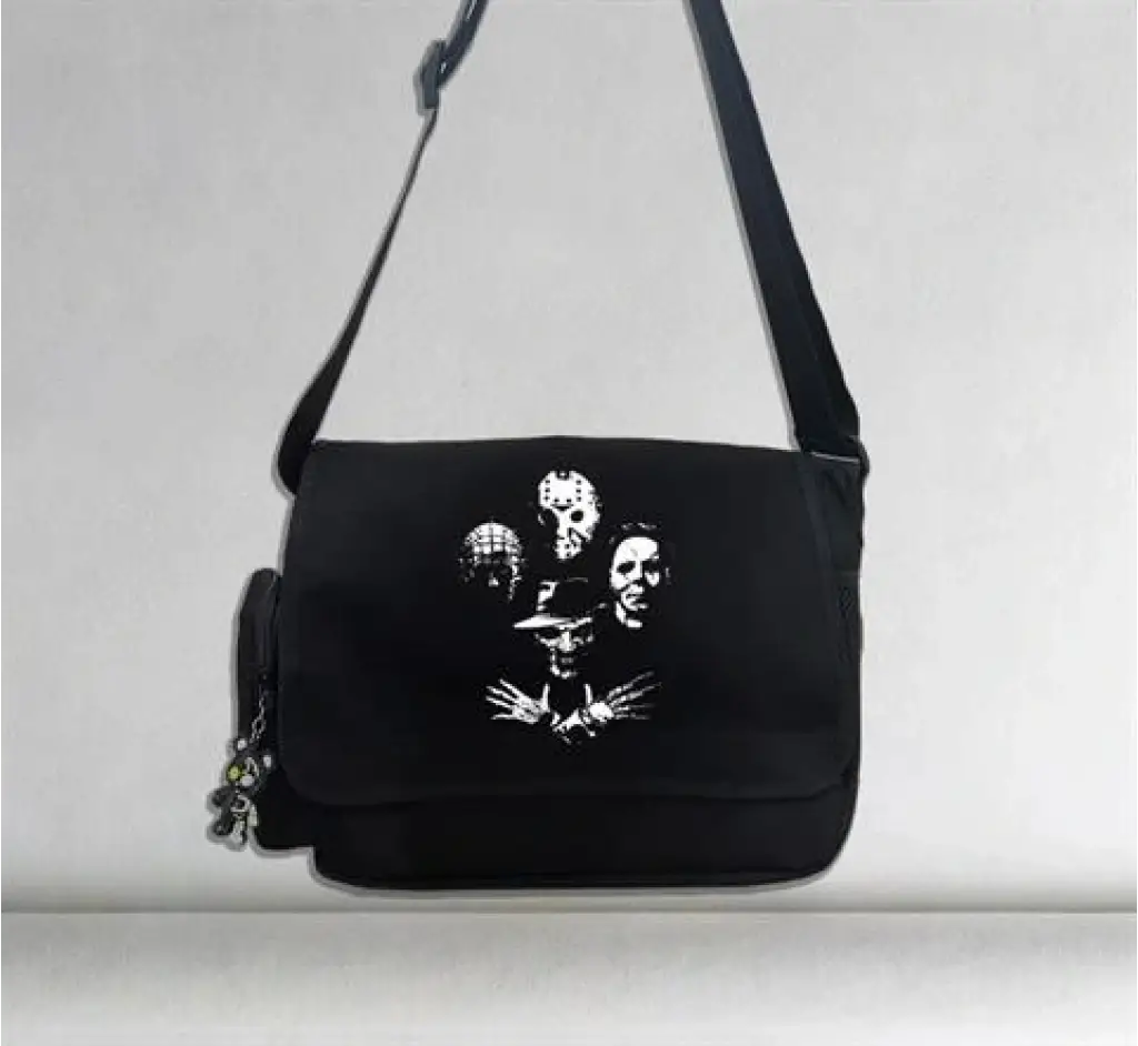 Halloween Bad Faces Baskılı Unisex Siyah Postacı Çantası