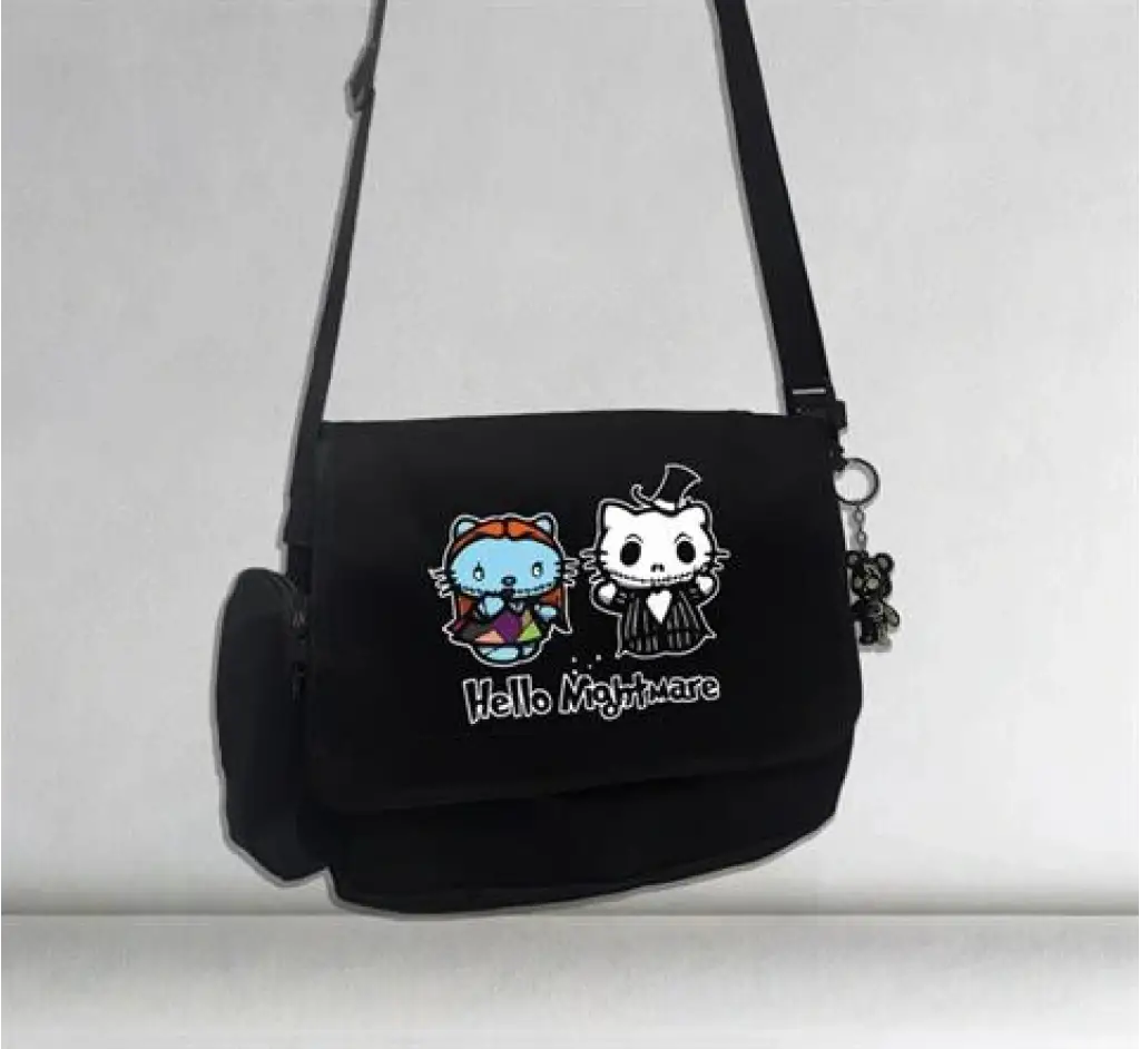 Halloween Hello Nightmare Baskılı Unisex Siyah Postacı Çantası