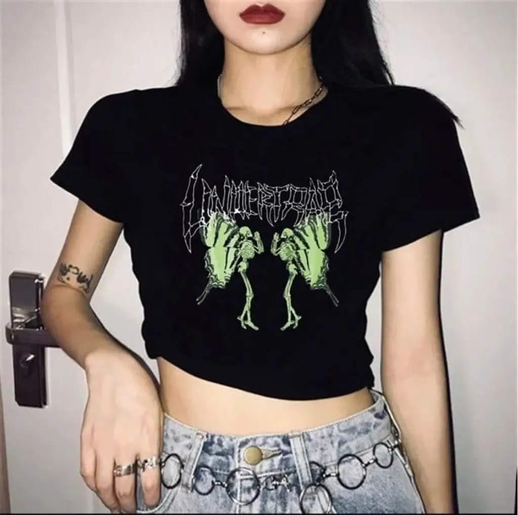 Harajuku Gothic Retro Butterfly Siyah Crop