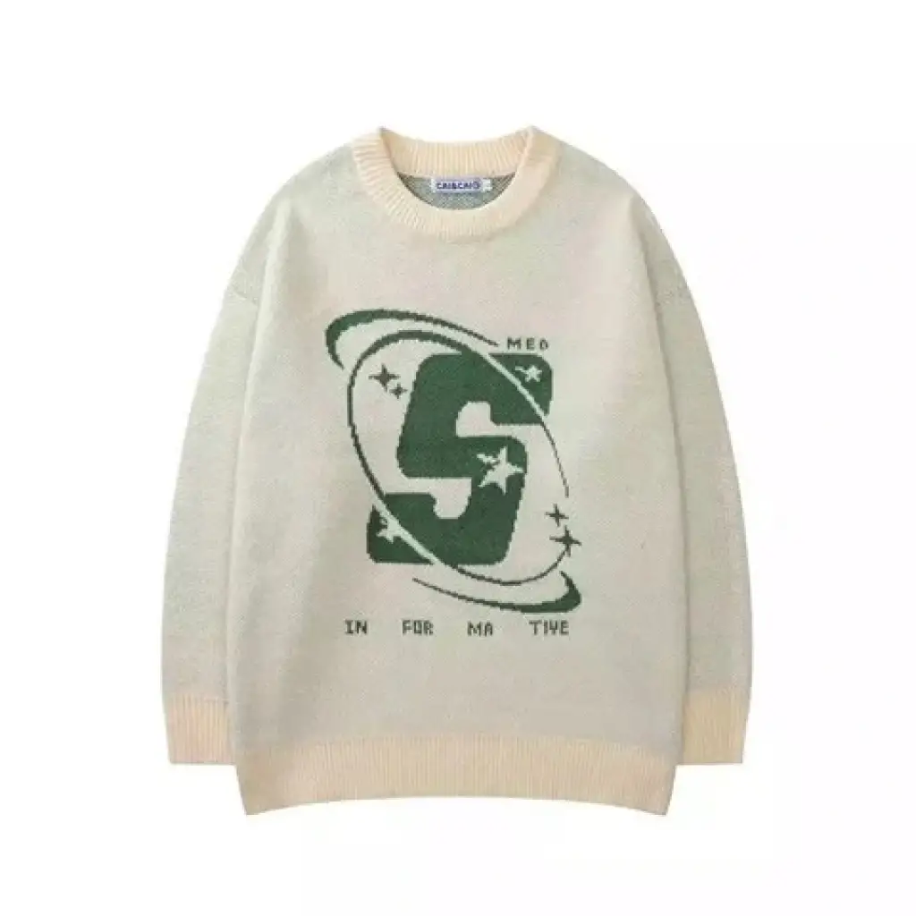 Touz Moda özel koleksiyonu Harajuku Vintage Unisex Krem Oversize Kazak