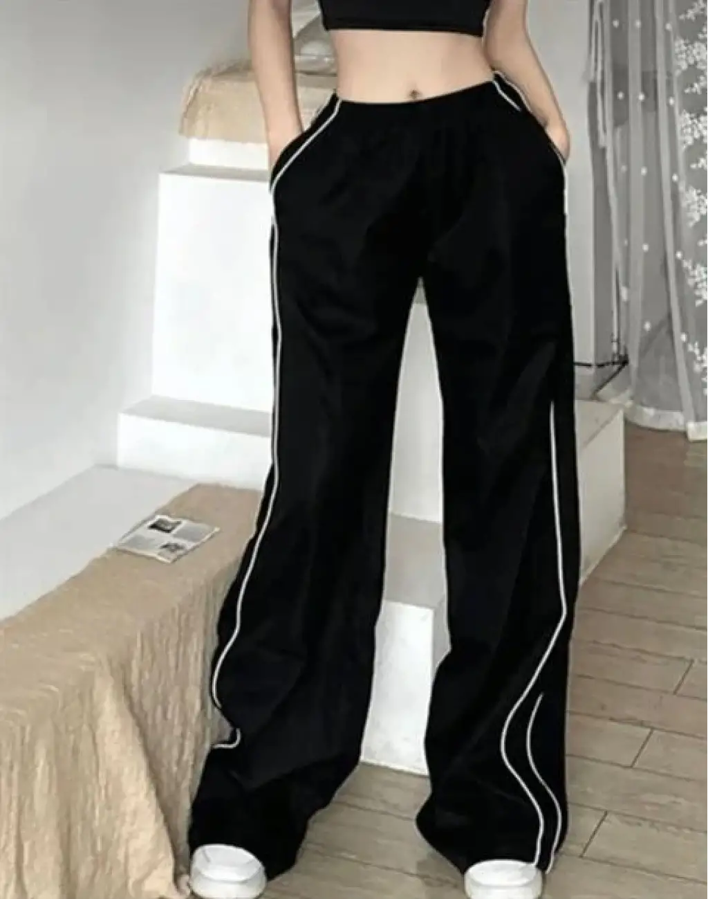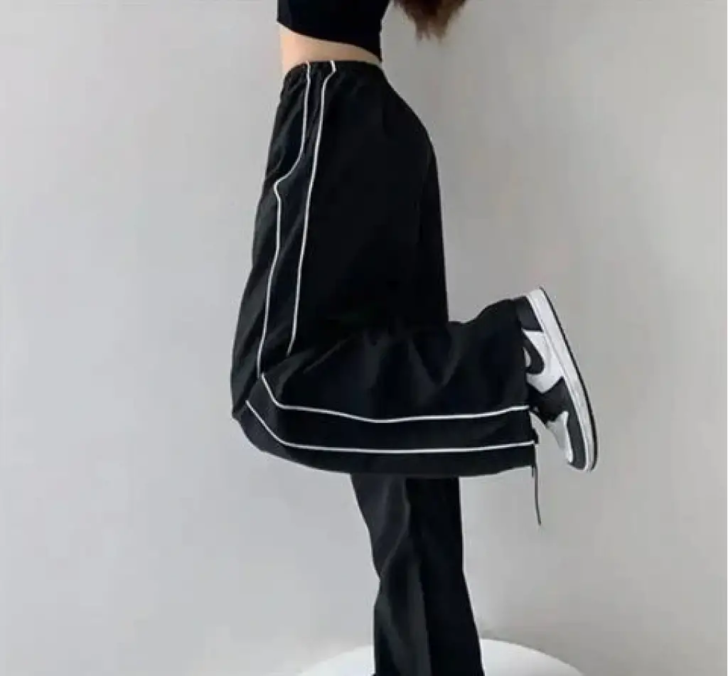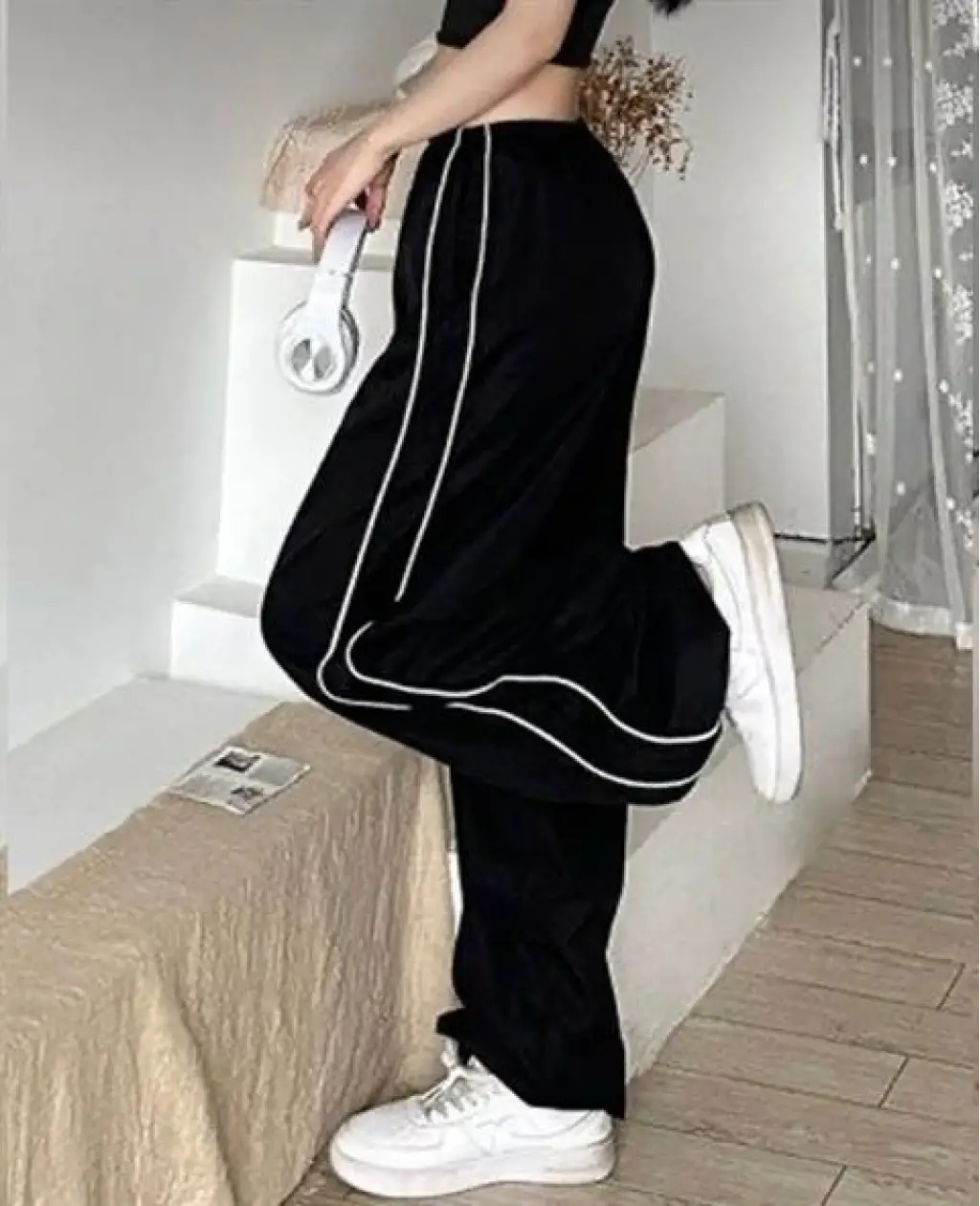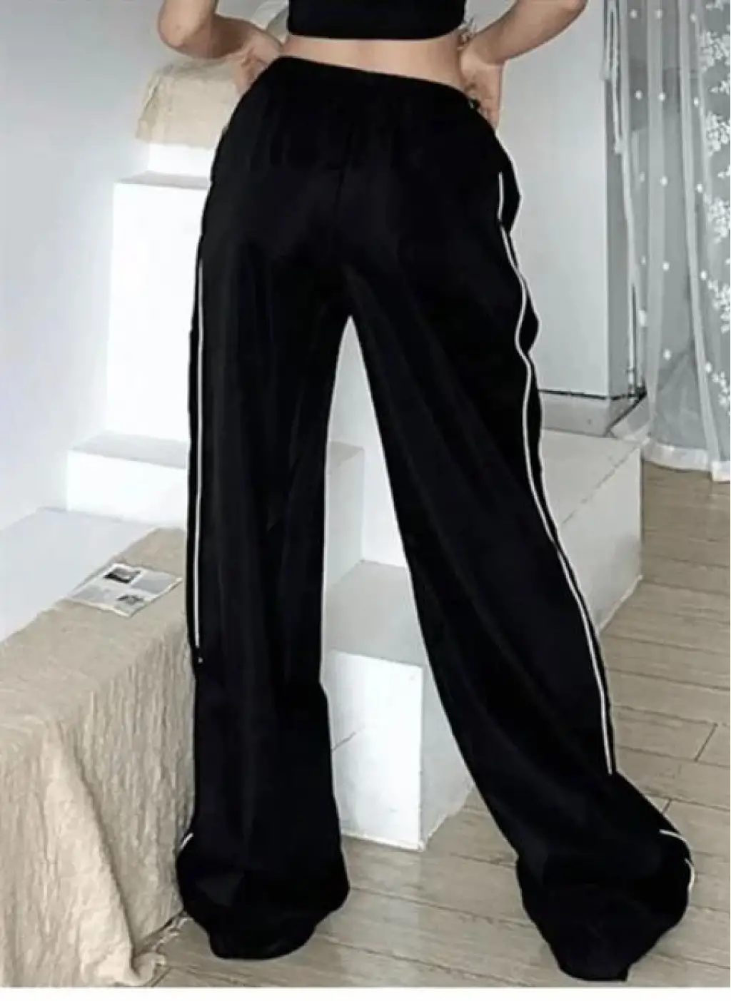 Harajuku Zip Detail Çift Çizgili Navy Blue Tracksuit Oversize Lacivert Eşofman Altı