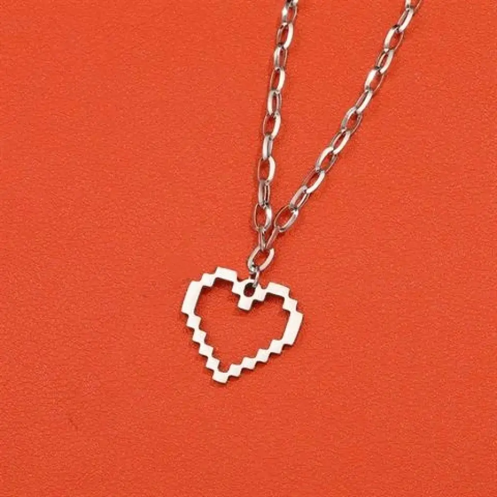 Gümüş Renk Zincirli Kalp Fiyonk İthal Kolye