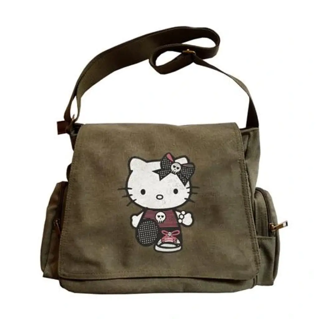 Hello Kitty Goth Baskılı Unisex Yeşil Postacı Çantası