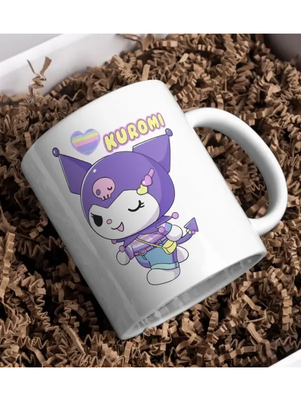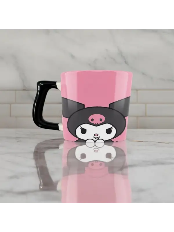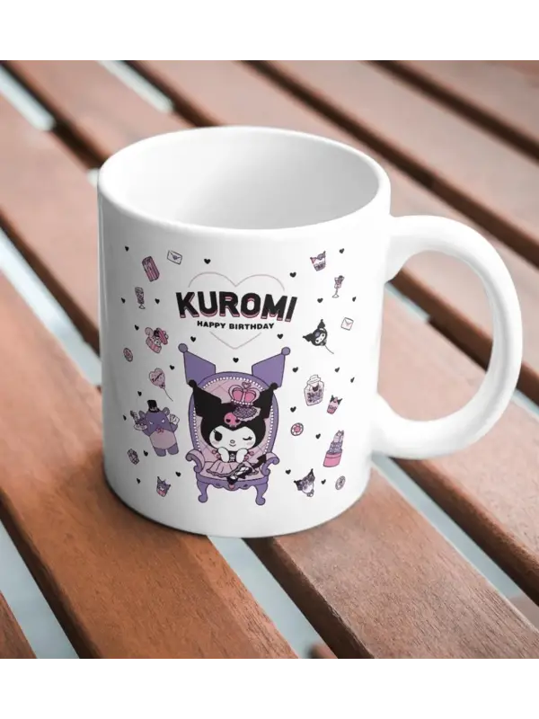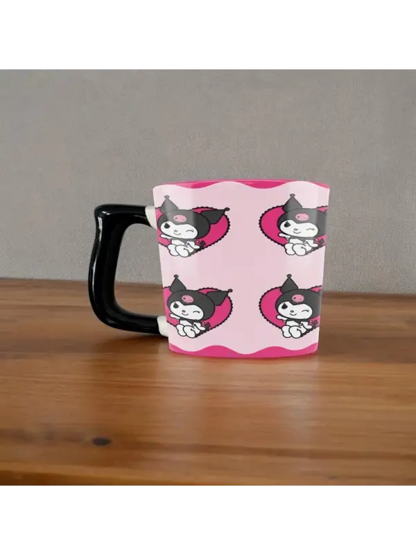 Kuromi Detail Beyaz Siyah Kulp Kupa