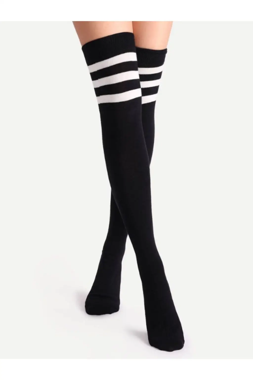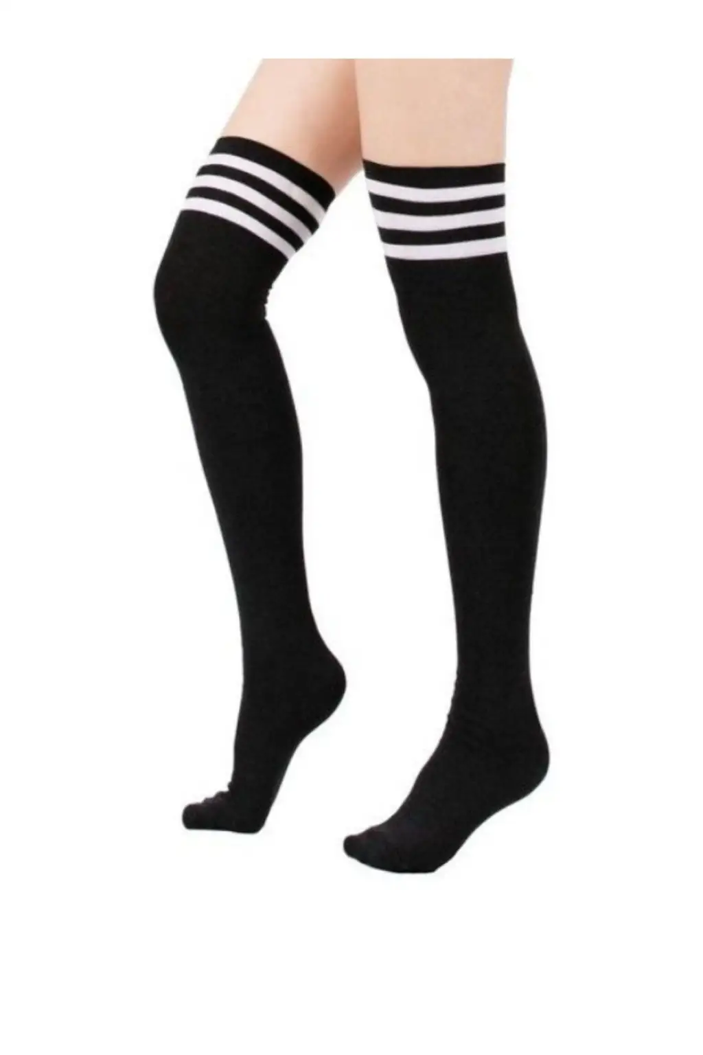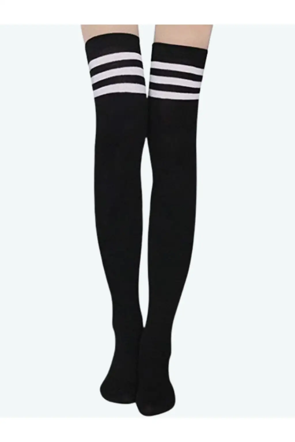 ESC BUTİK'in özel serisi, Women's Extra Long Siyah Striped Diz Üstü Çorap ile tarzınızı tamamlayın.