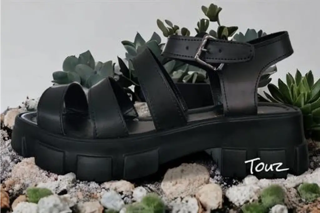 Kalın Tabanlı Çift Tokalı Kadın Siyah Sandalet
