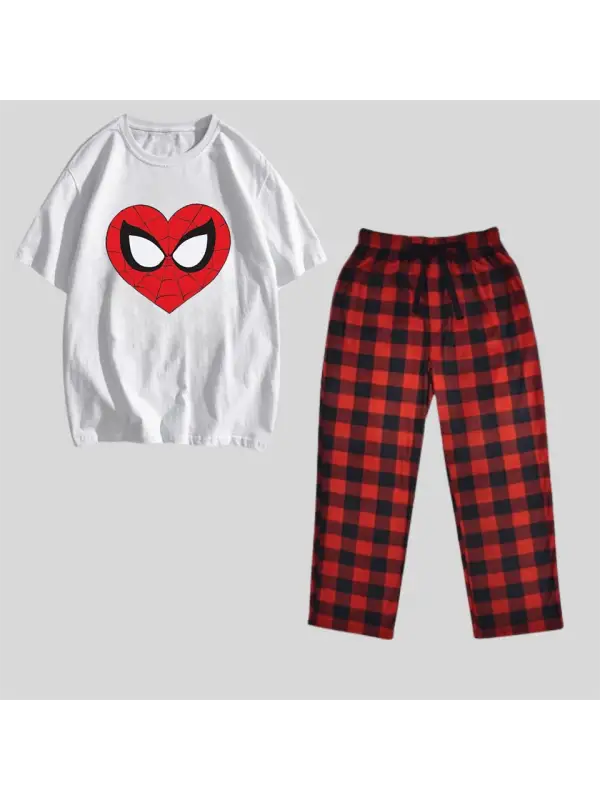 Spider Heart Baskılı Siyah Unisex Oversize Kısa Kol Alt Üst 2 L.İ Takım