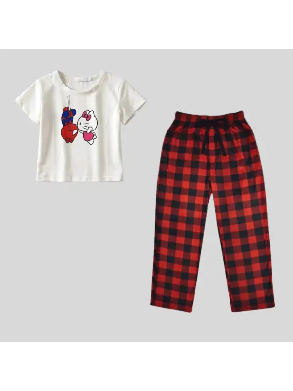 Spider&Hello Kitty Baskılı Siyah Unisex Oversize Crop Alt Üst 2 L.İ Takım