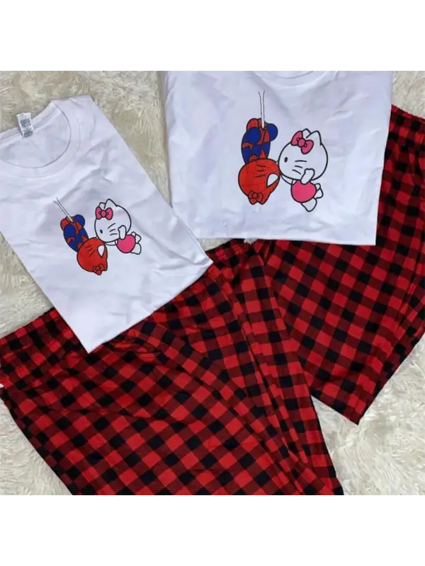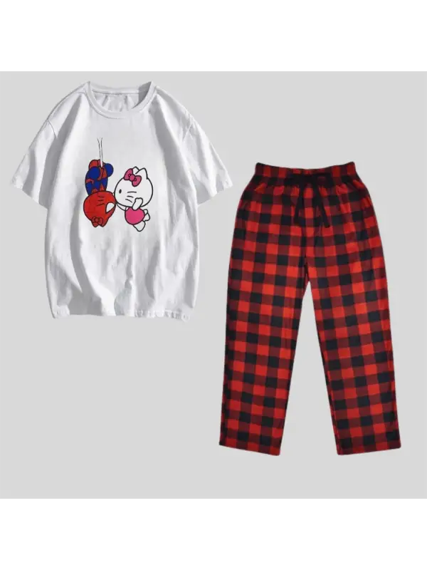 Spider&Hello Kitty Baskılı Siyah Unisex Oversize Kısa Kol Alt Üst 2 L.İ Takım