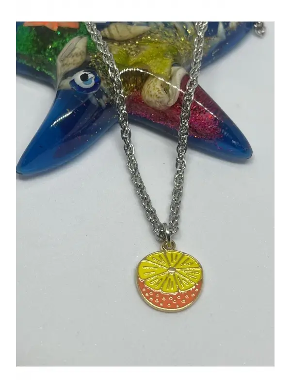 Anime Harajuku Retro Vintage Gümüş Kaplama Portakal Zincirli Aksesuar Kolye