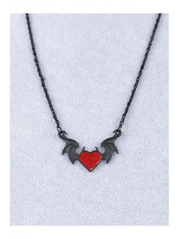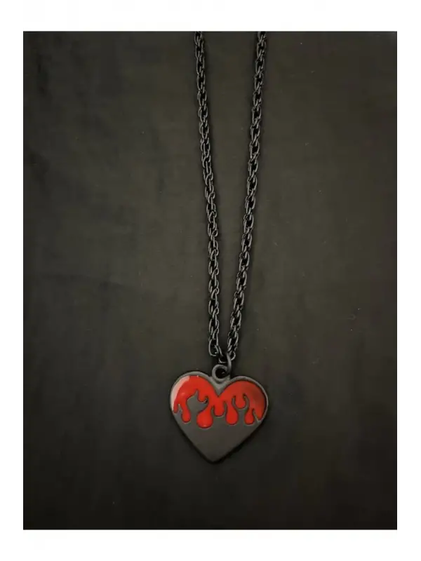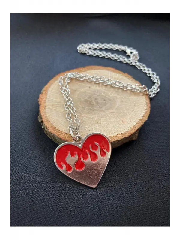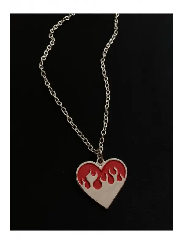 Antik Gotik Gümüş Kaplama Unisex Harajuku Gothic Alevli Kalp Kolye