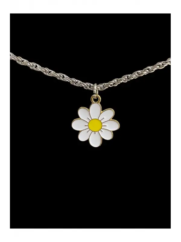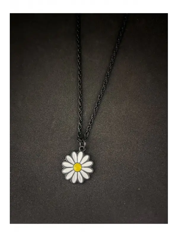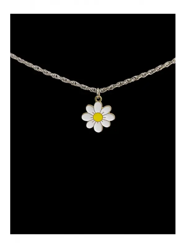 Antik Gümüş Kaplama Unisex Paslanmaz Çelik Zincirli Papatya Kolye