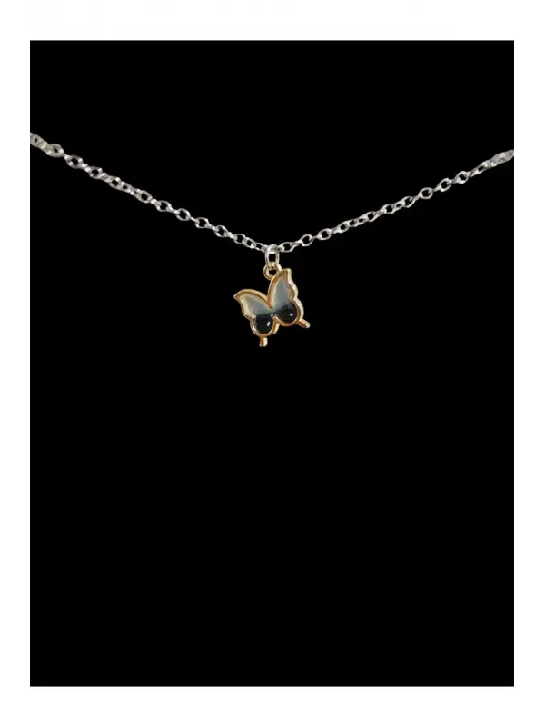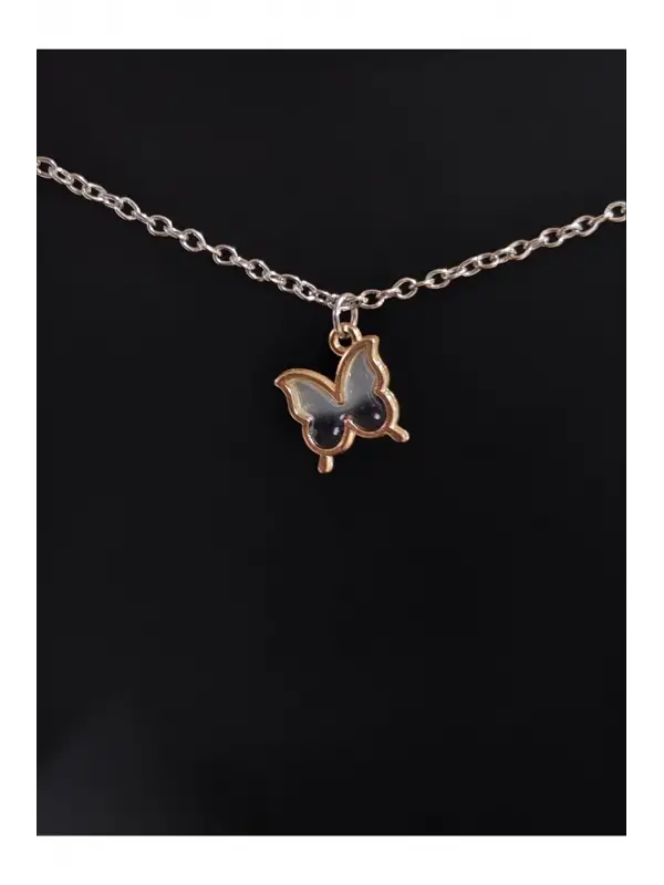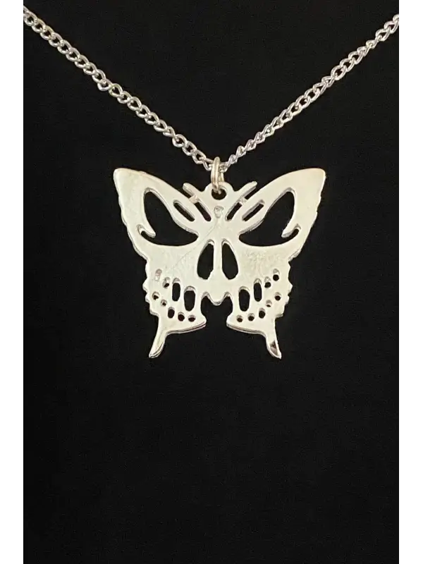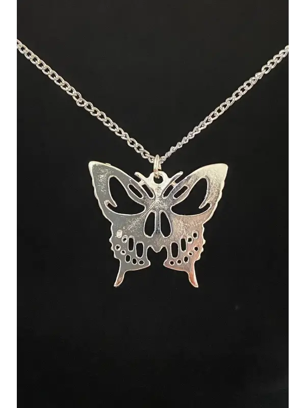 Paslanmaz Çelik Retro Vintage Aesthetic Grey Butterfly Zincirli Kolye