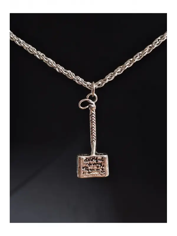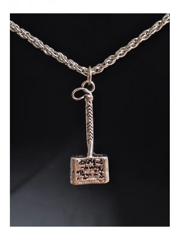 Antik Gümüş Kaplama Marvel Avengers Thor Çekiç Sembol Unisex Zincirli Hediyelik Kolye