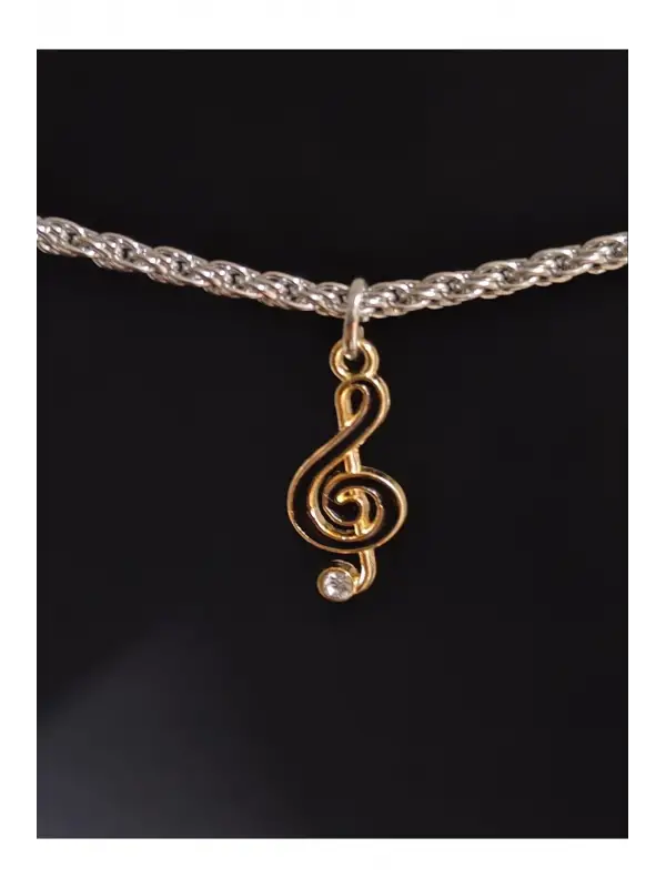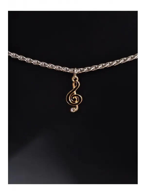 Antik Gümüş Kaplama Müzik Sol Melody Unisex Zincirli Hediyelik Kolye