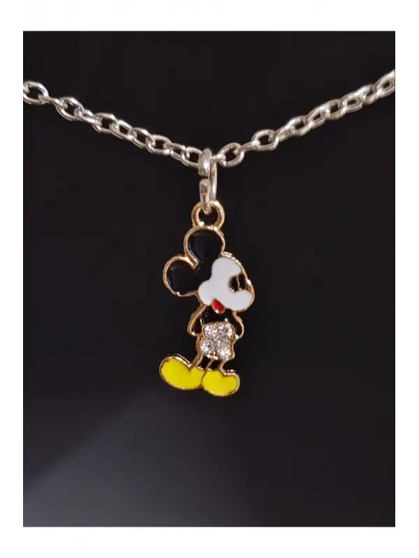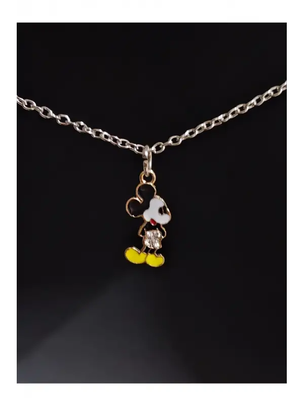 Antik Gümüş Kaplama Sevimli Micky Mouse Sanrio Unisex Zincirli Hediyelik Kolye