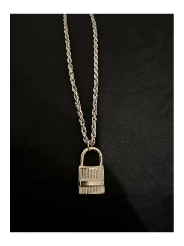 Antik Gümüş Kaplama Unisex Ihtişamlı Kilit Zincirli Kolye