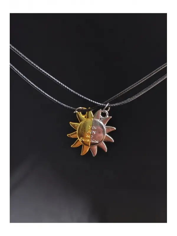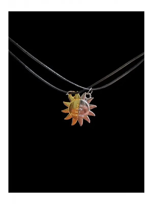Gümüş Kaplama Ay Güneş Mıknatıslı 2 'li Unisex Hediyelik Çift Kolye