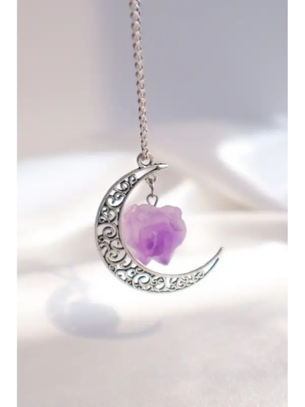İhtişamlı Doğal Taş Amestist'li Moon Hediyelik Kolye