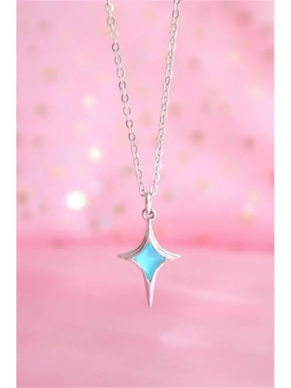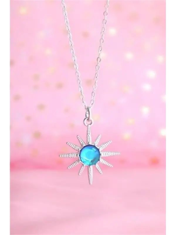 Gümüş Renk Mavi Taşlı Kuzey Yıldızı İthal Kolye
