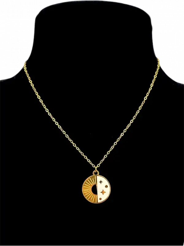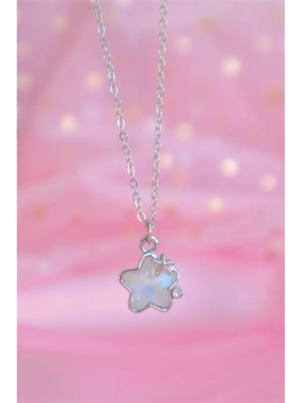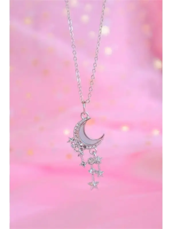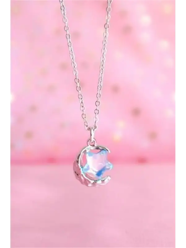 Gümüş Renk Zincirli Ay Holografik Yıldız İthal Kolye