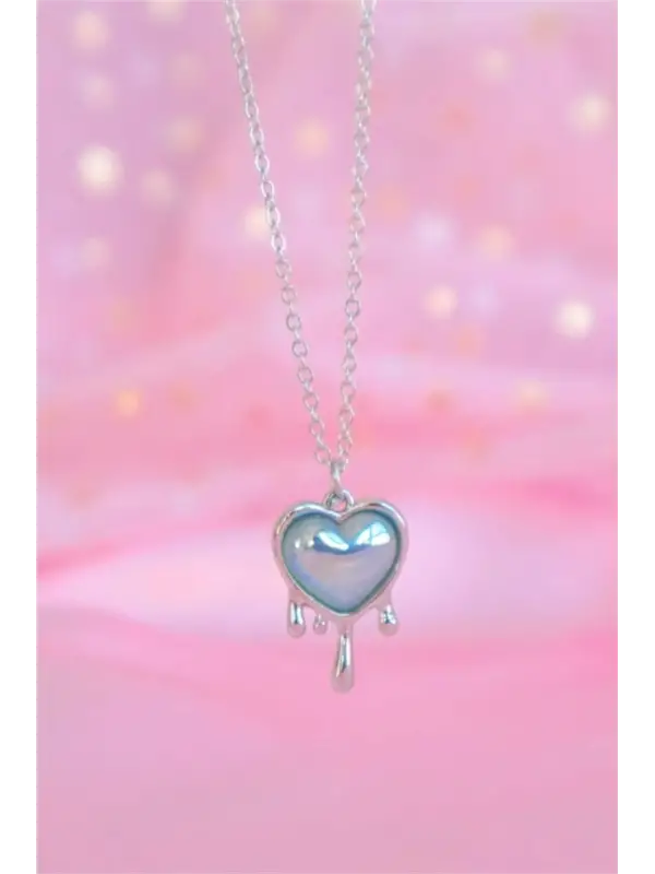 Gümüş Renk Zincirli Blue Crystal Heart Melting İthal Kolye