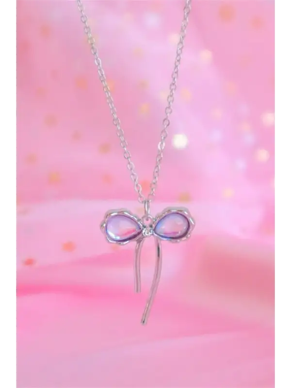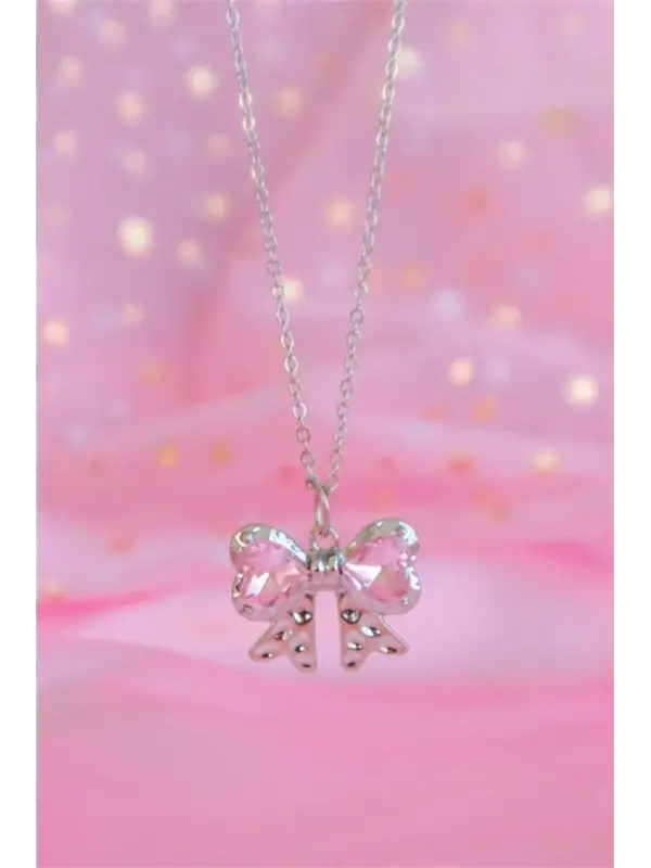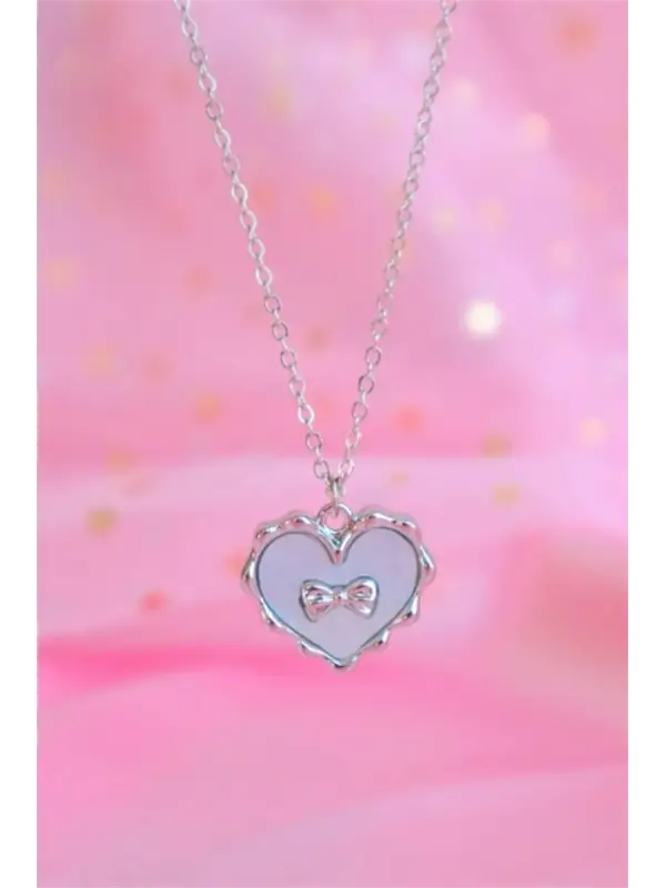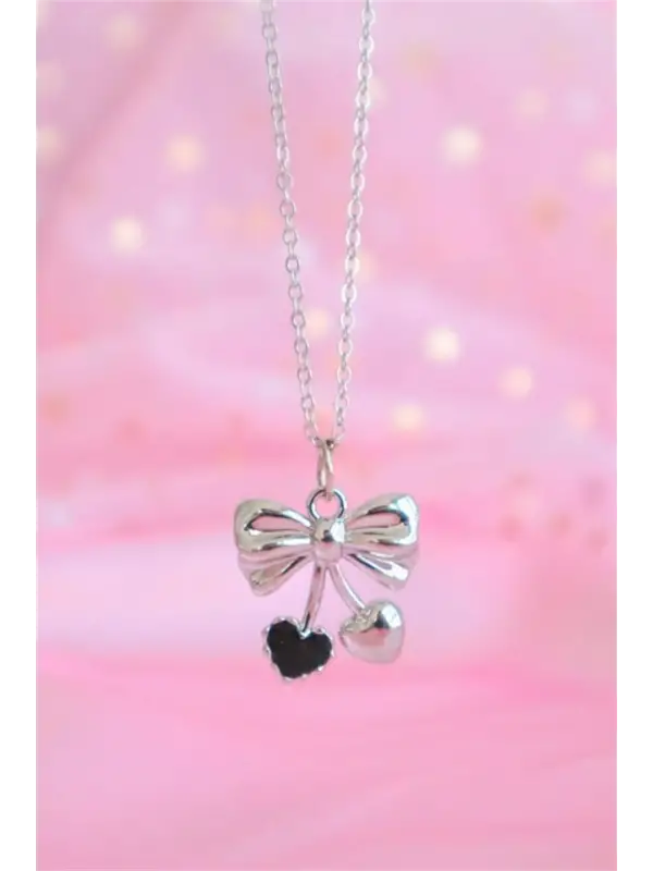 Gümüş Renk Zincirli Kalp Fiyonk İthal Kolye