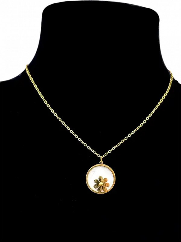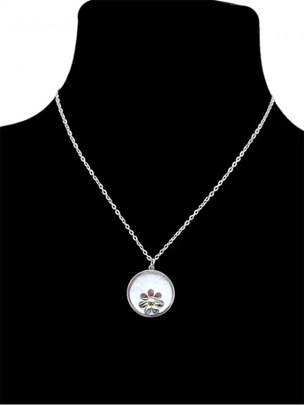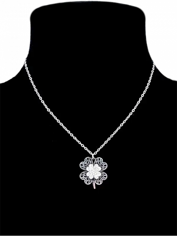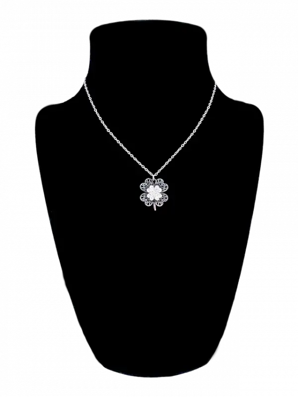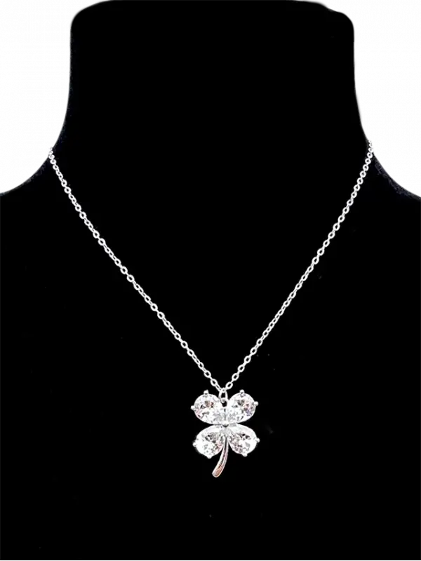 Gümüş Renk Zincirli Beyaz Taşlı Çiçek İthal Kolye