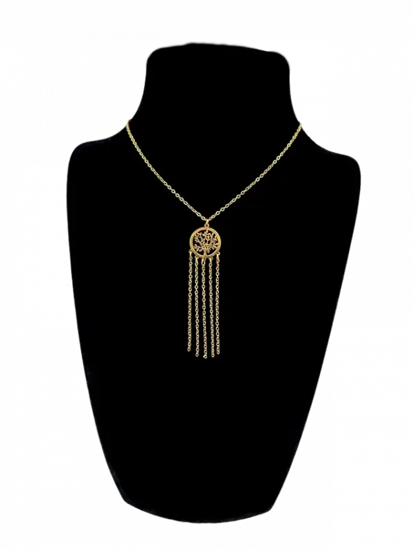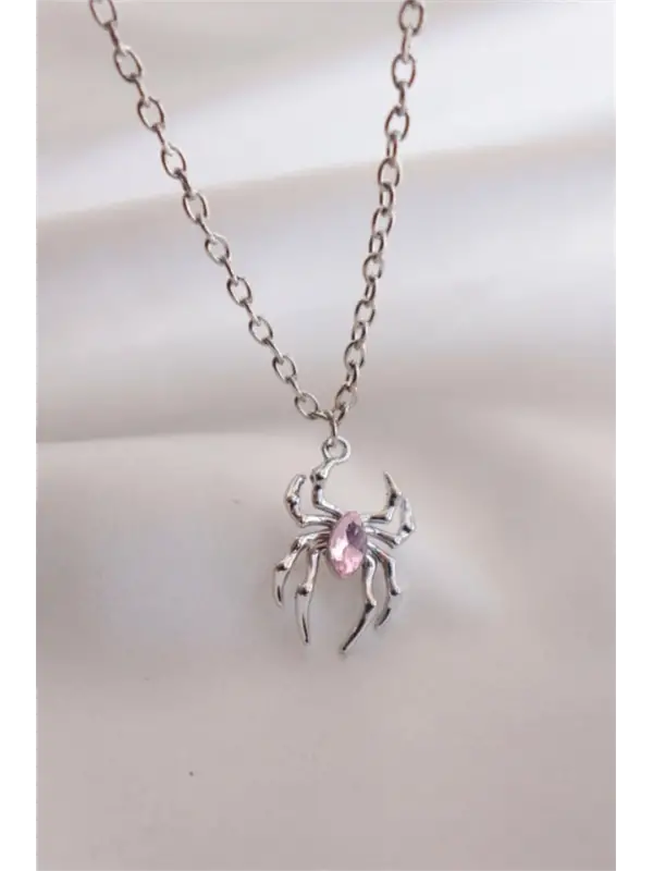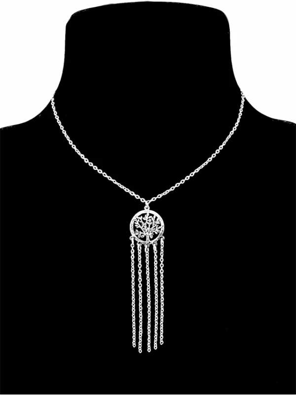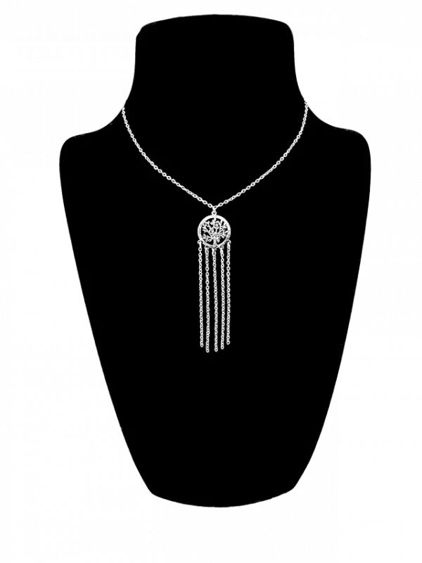Gümüş Renk Zincirli İçi Dolu Fiyonk İthal Kolye