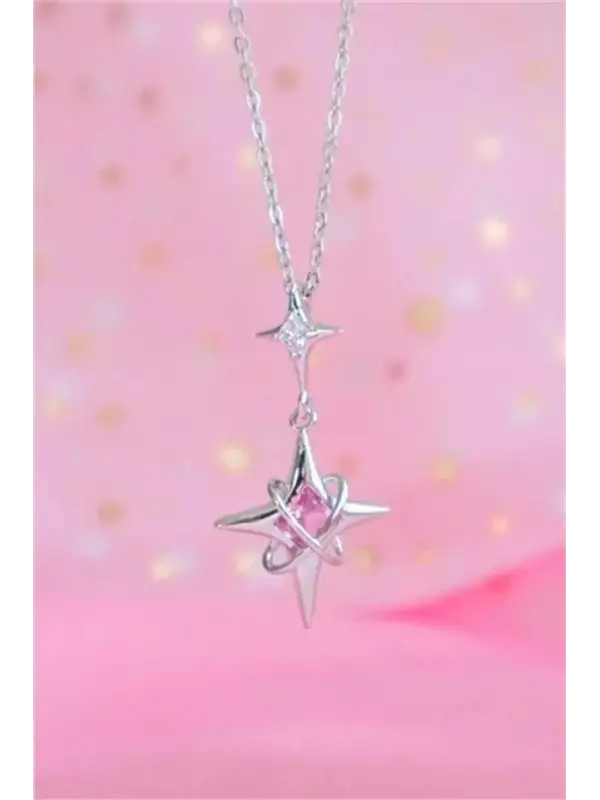 Paslanmaz Çelik Zirkon Taşlı Kutup Yıldızı Kolye