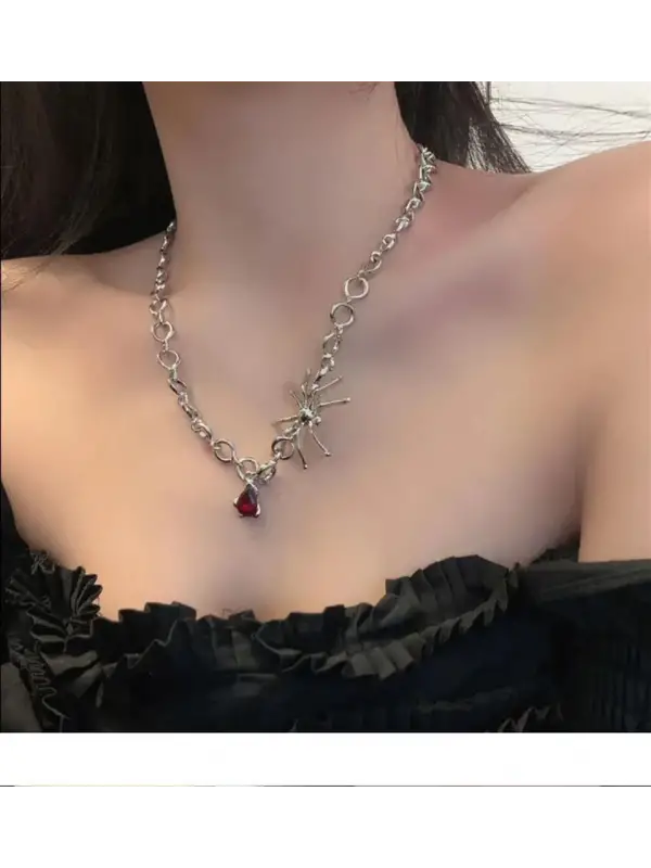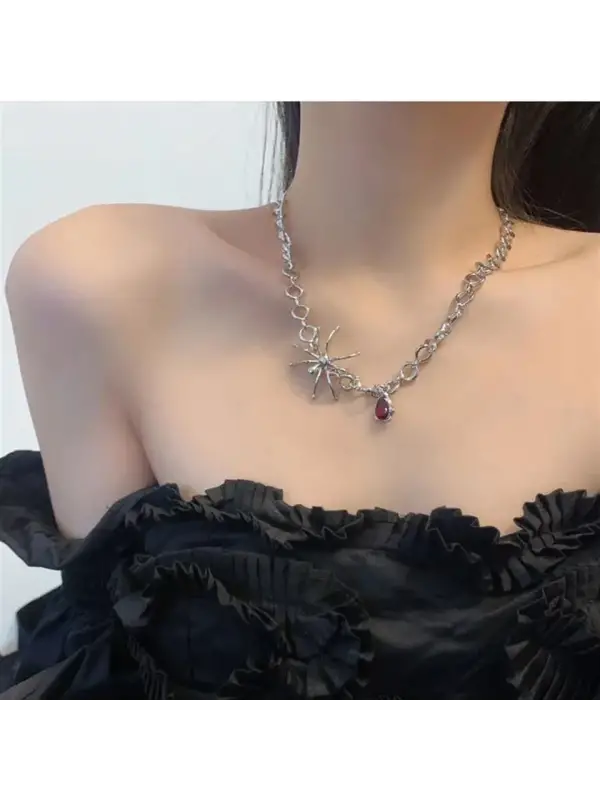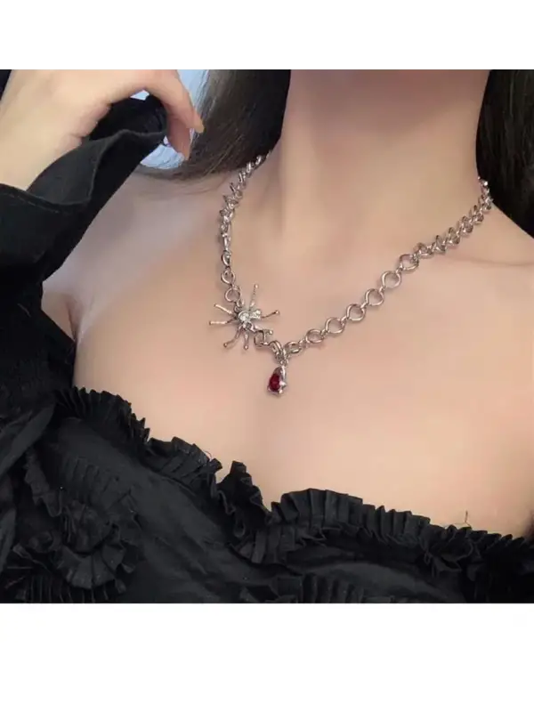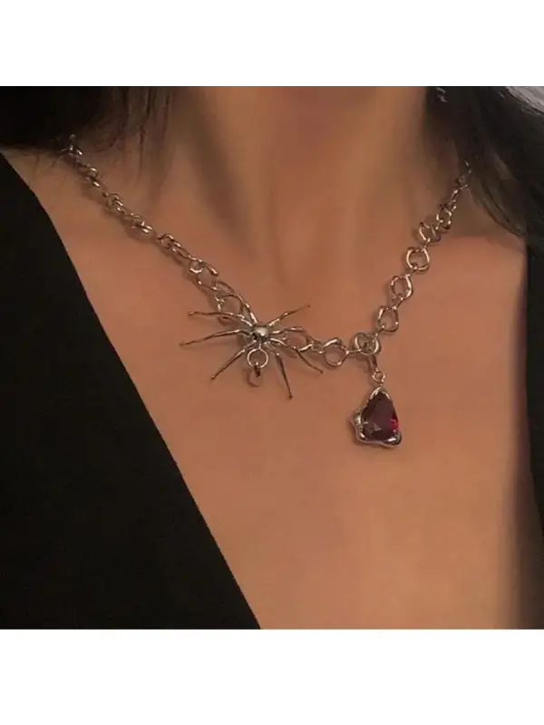Gothic Spider Ve Taşlı Gümüş Renk Kolye
