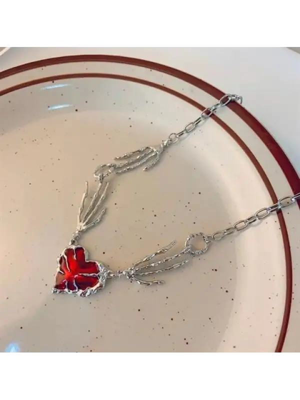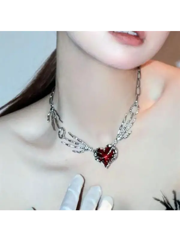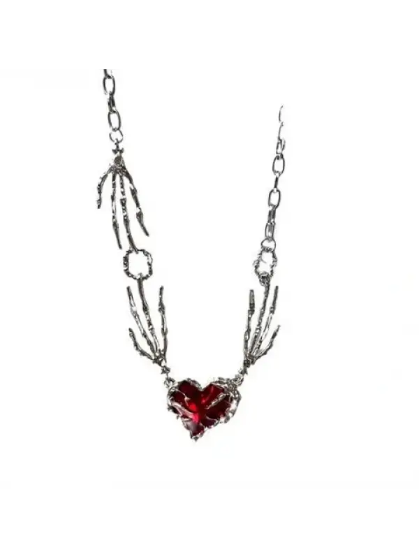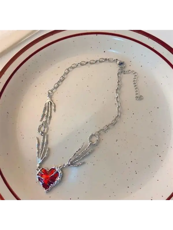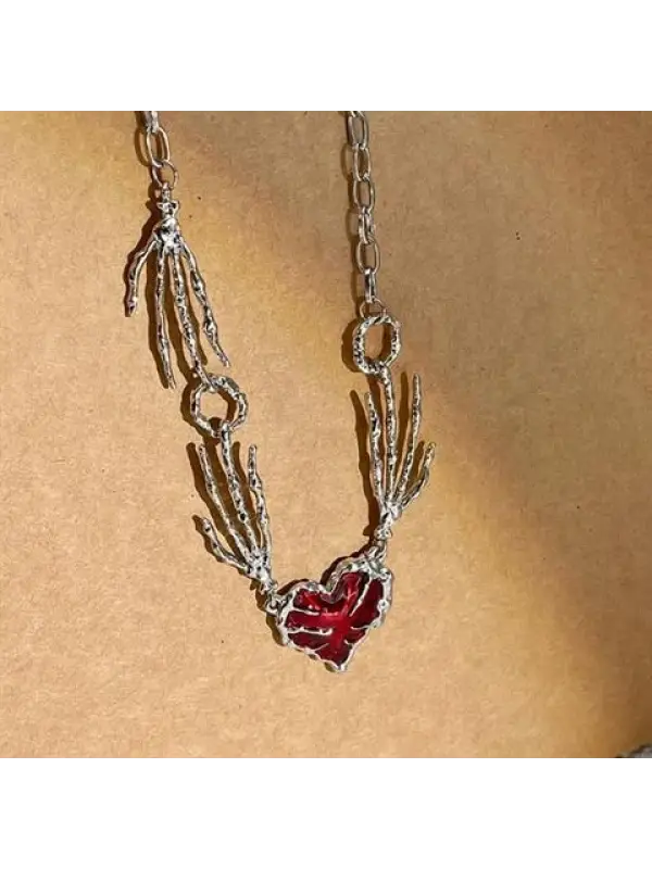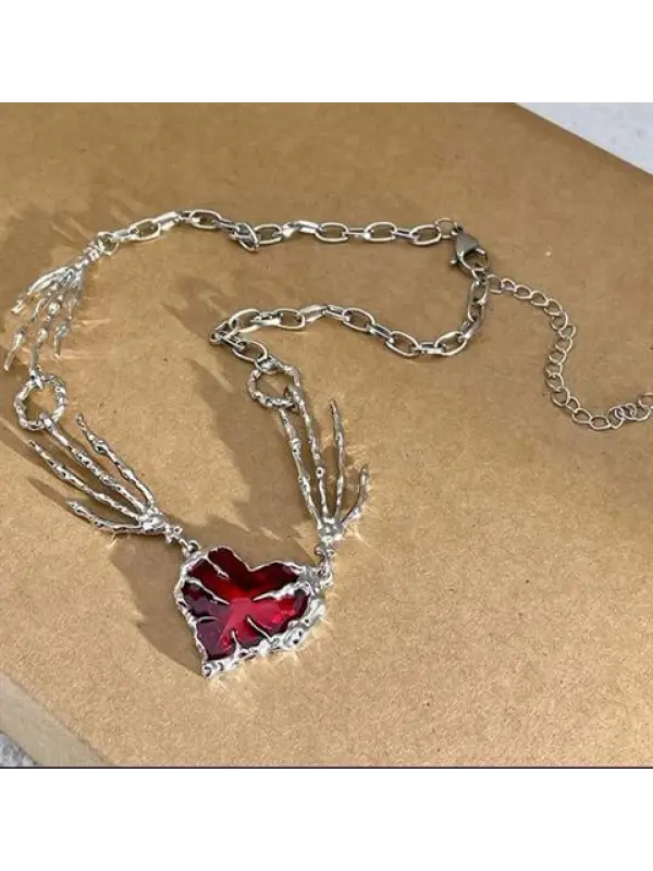Punk Heart Skeleton Hand Kolye Gümüş Renk Kolye