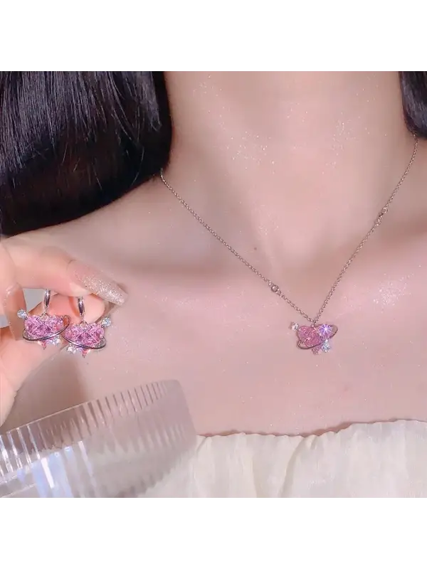 Y2k Galaksi Pembe Zirkon Kristal 2'Li Kolye Takımı