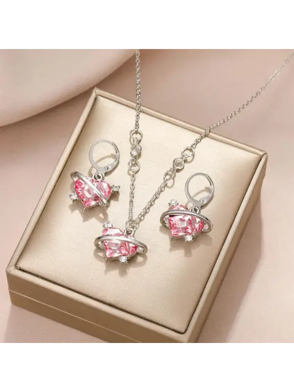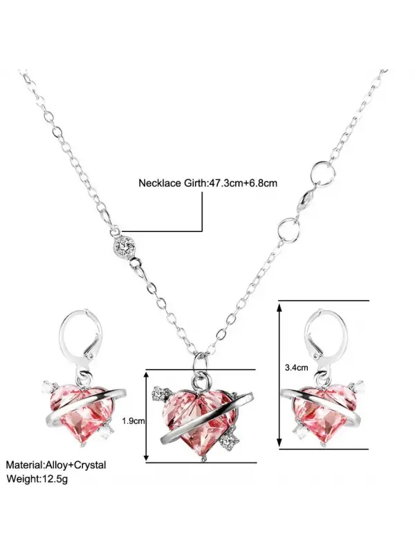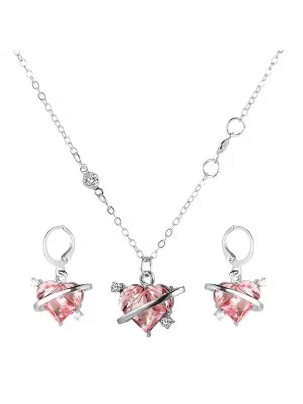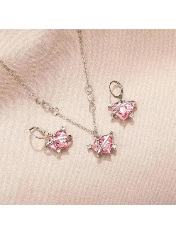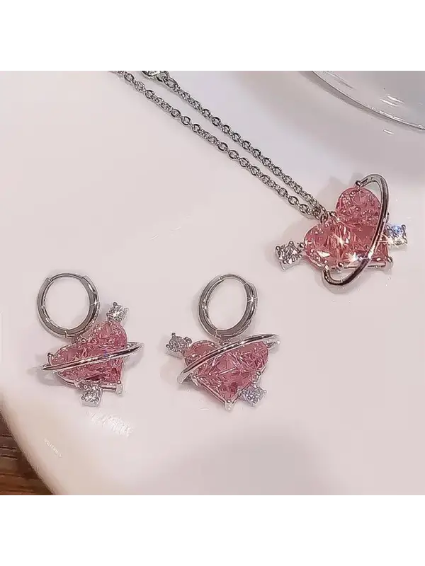 Y2k Heart Pembe Zirkon Kristal Kolye Takımı