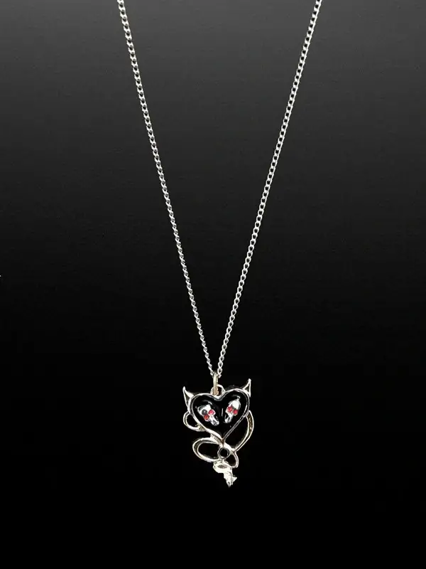 Heart Devil Skulls Black Necklace Kolye
