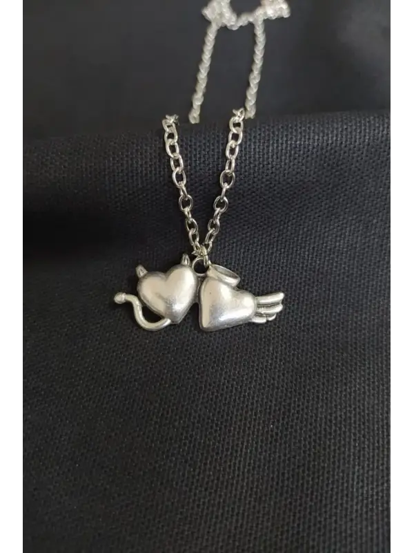 Touz Devil Angel Double Heart Tasarımlı Kolye