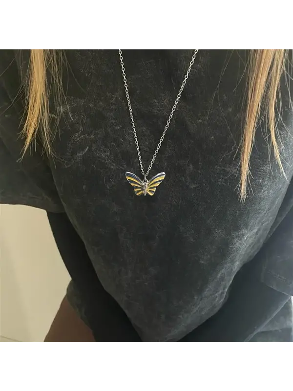 Yellow Navy Blue Butterfly Tasarımlı Kolye