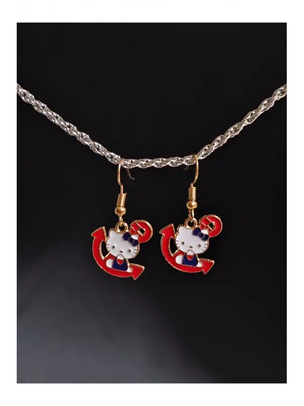Antik Gümüş Kaplama Anime Hello-Kity Sembol Küpe
