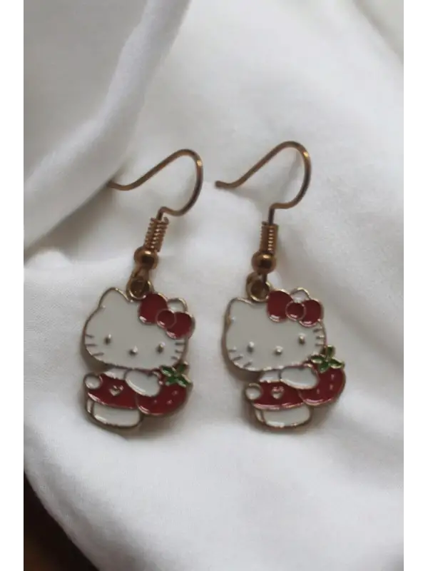 Retro Antik Gümüş Kaplama Anime Hello Kity Sembol Küpe