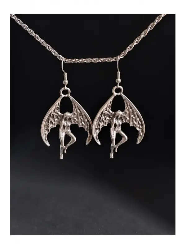 Antik Gümüş Kaplama El Yapımı Heart Devil Kanatlı Küpe