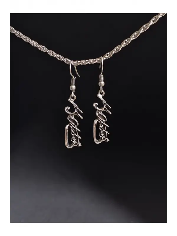 Antik Gümüş Kaplama Vintage Sallantılı Alevli Gitar Küpe