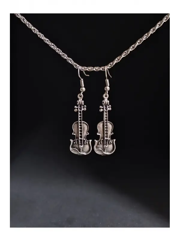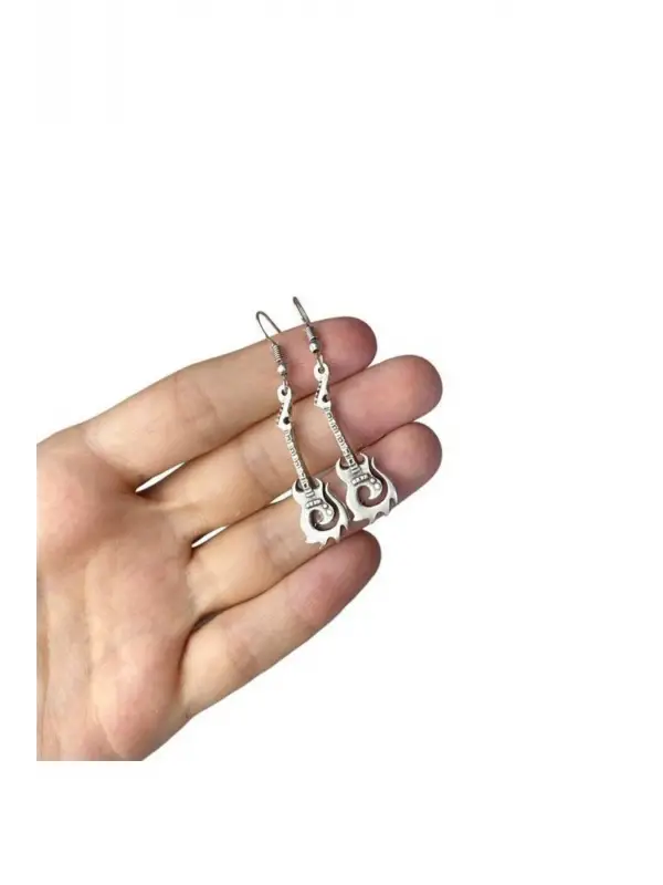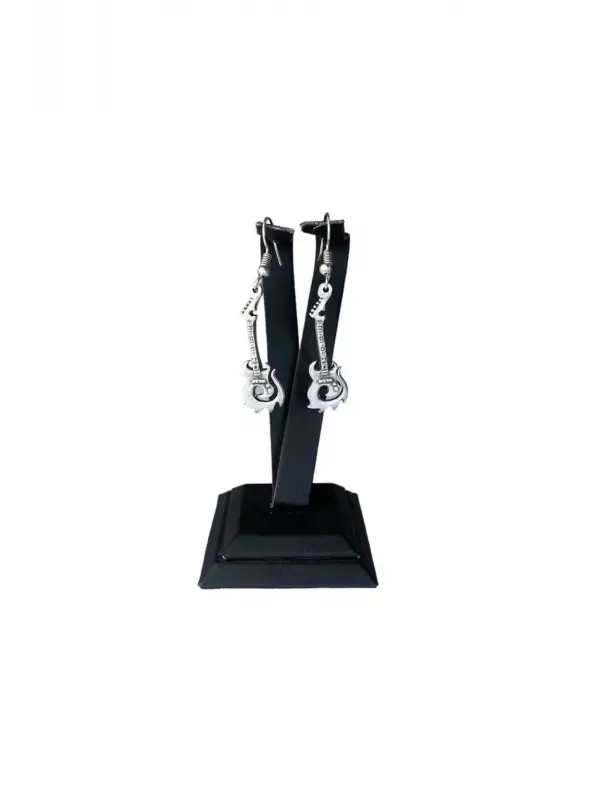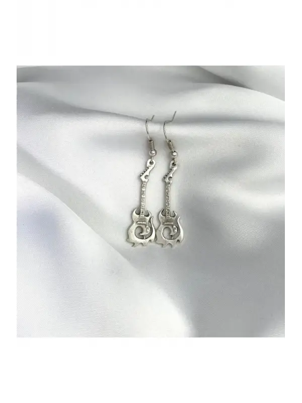 Antik Gümüş Kaplama El Yapımı Retro Müsic Gitar Küpe