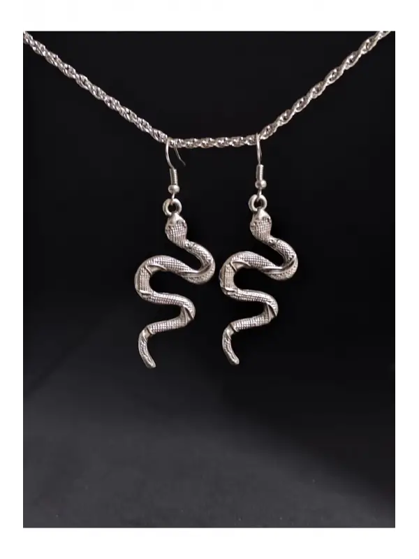 Antik Gümüş Kaplama El yapımı Snake Yılan Küpe