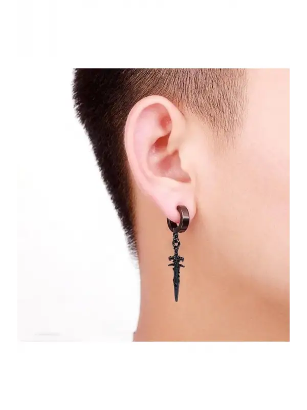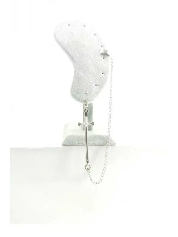 Antik Gümüş Kaplama Kadın Gotik Anime Kadın Şövalye Kılıcı Zincirli Tragus Sıkıştırma Küpe