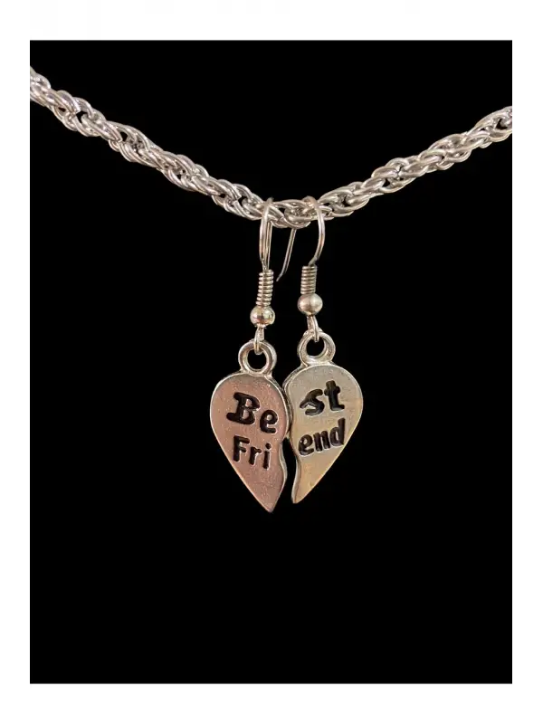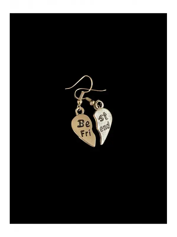 Antik Gümüş Kaplama Paslanmaz Çelik Kadın Gotik Best Friends Küpe